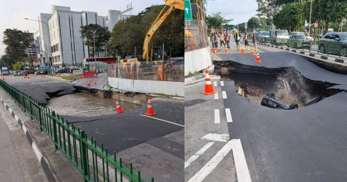 “Sebuah kenderaan terjatuh ke dalam lubang benam. Pasukan Pertahanan Awam Singapura (SCDF) menyelamatkan pemandu wanita itu dan menghantarnya ke hospital.