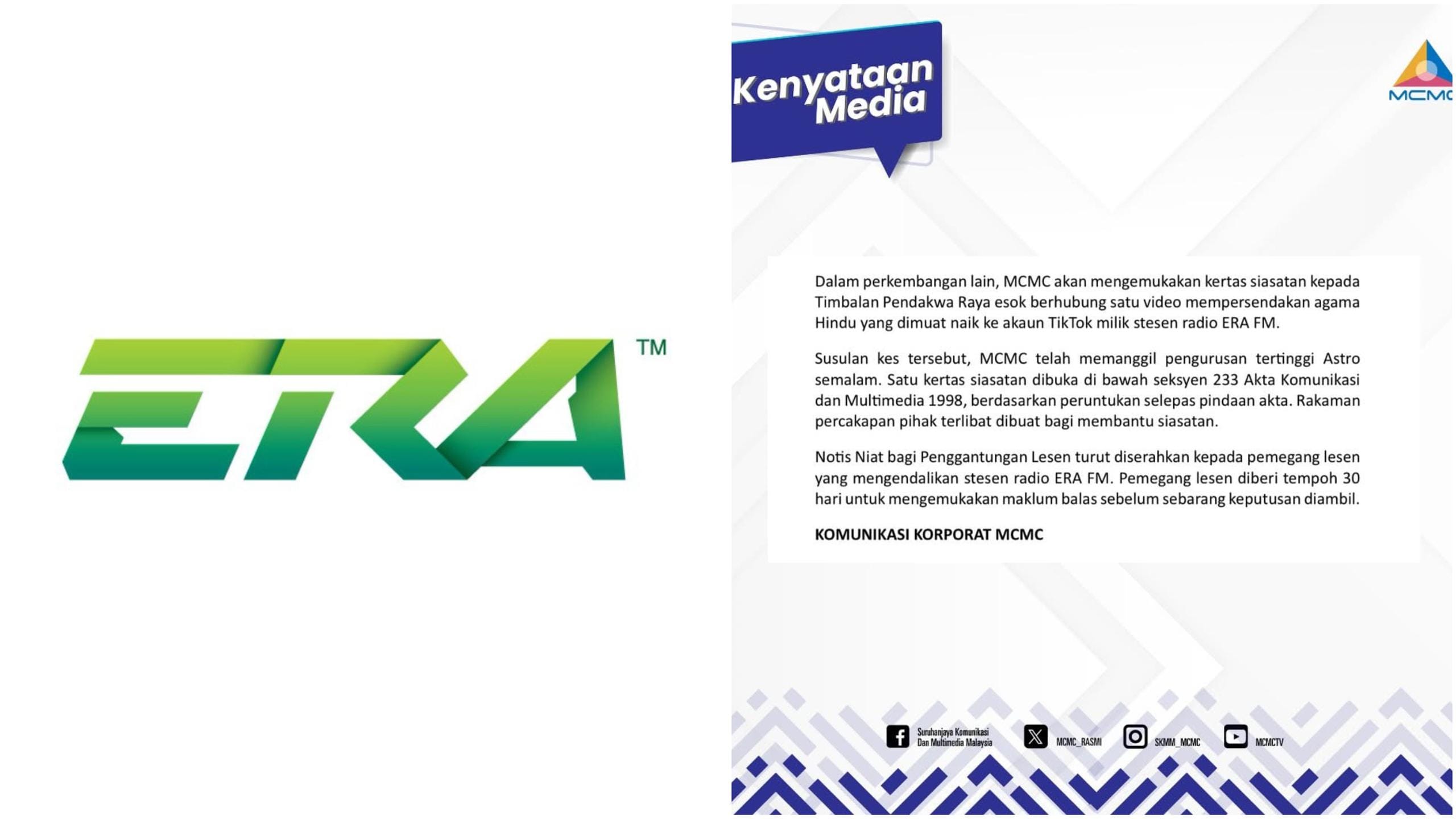 MCMC Keluar Notis Niat Gantung Lesen Stesen Era