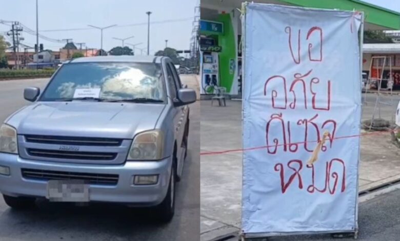 Seorang pemilik kenderaan di Thailand mencuri perhatian apabila meletakkan notis jualan pada trak pikap miliknya dengan alasan tidak mampu membeli minyak.